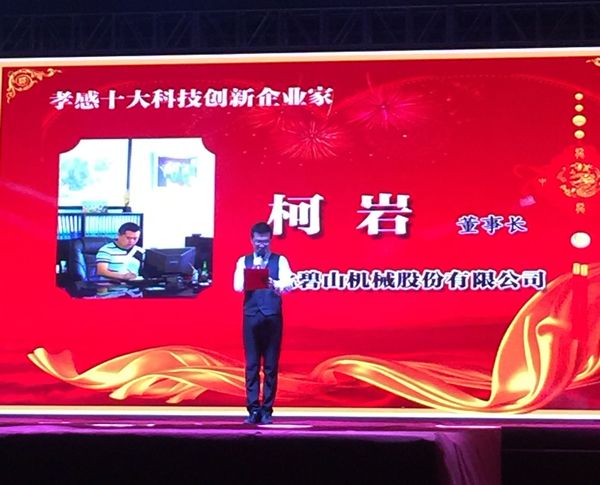 2015年8月8日晚,孝感市人民廣場上,華麗的鎂光燈璀璨,人聲鼎沸。“首屆孝感十大經(jīng)濟領(lǐng)軍人物”頒獎活動在此舉行,10家孝感十大最具影響力企業(yè)、10名孝感十大科技創(chuàng)新企業(yè)家、10位孝感十大經(jīng)濟領(lǐng)軍人物依次上臺領(lǐng)獎。湖北碧山機械股份有限公司榜上有名,碧山機械股份有限公司董事長柯巖先生也被評為孝感十大科技創(chuàng)新企業(yè)家。